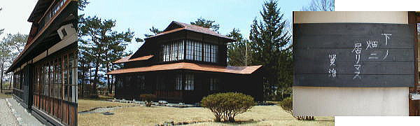上記、桜町にあった羅須地人協会を移転した場所が現花巻農業高校の敷地内。ここで卒業生・在校生により保存されています。内部を見学するには、高校玄関で鍵を借りる必要あり。裏の黒板にかかれている「下ノ畑ニ居リマス」は消えかかると在校生が交代で上書きしているそうです。高校前に数台分の駐車場あり。